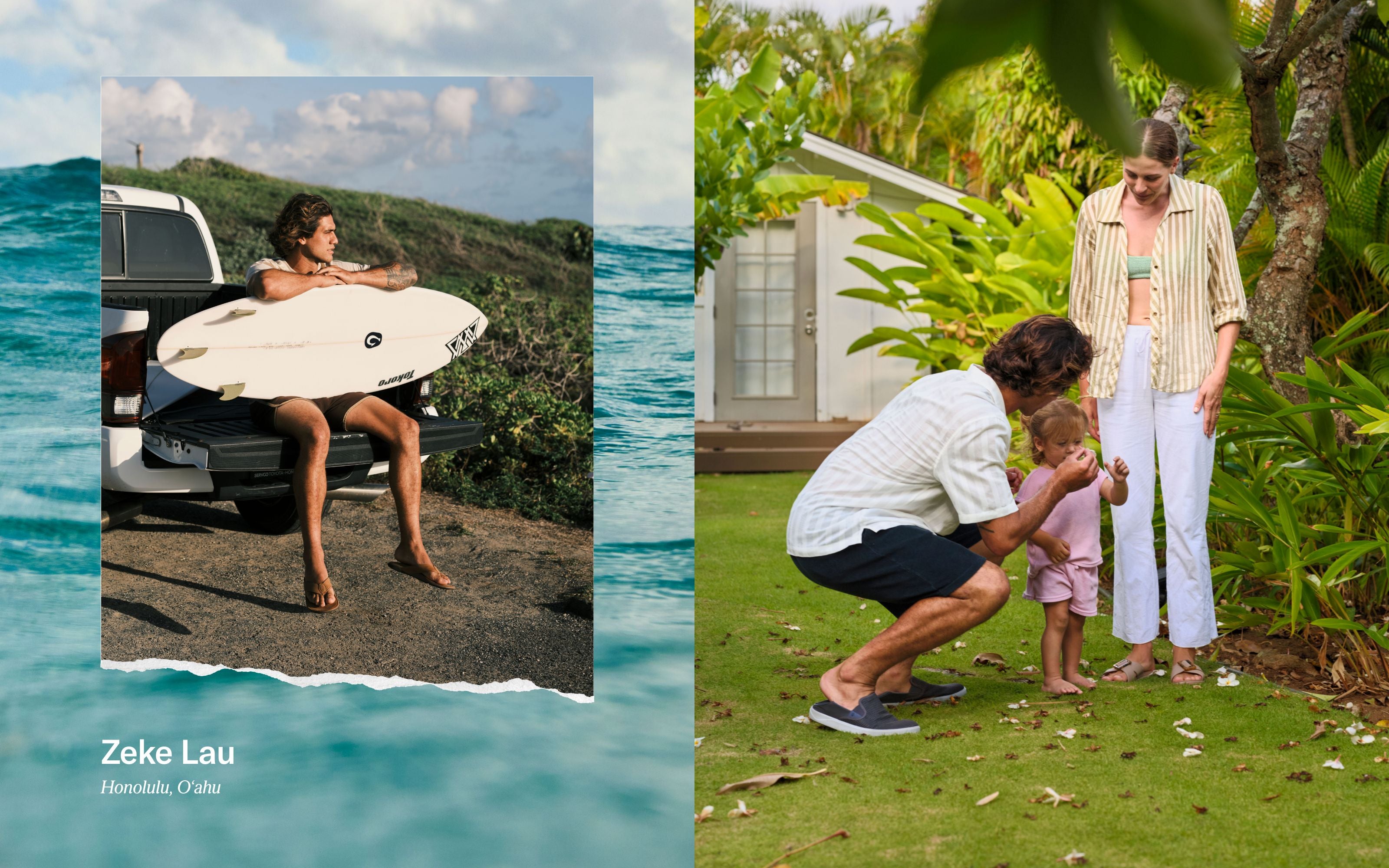 Professional surfers Zeke Lau and Malia Manuel have forged stellar careers and inspired lifestyles based on their knowledge and skills in the ocean. Whether they’re charting a new path to a secret wave or taking their family to the tide pools, their top beach-ready picks are each curated for comfort and proven performance.